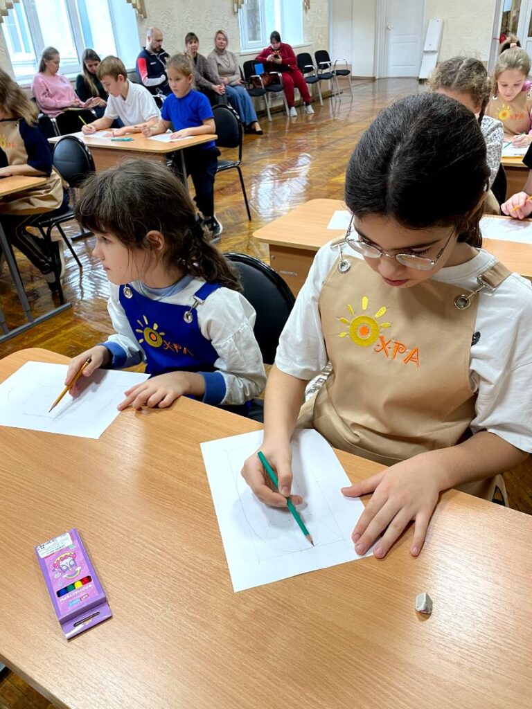 в зависимости от угла зрения» для учащихся 4-го года обучения детского объединения «Охра» декоративно-прикладного направления. Работая в парах, учащиеся провели эксперимент: наблюдали за изменениями формы предмета, смотря на него сверху и снизу. После этого они вывели правило изменения формы круга. Затем ребята применили полученные знания на практике и нарисовали летающую тарелку. Виктор Геннадьевич показал занятие по теме «Защитные действия в