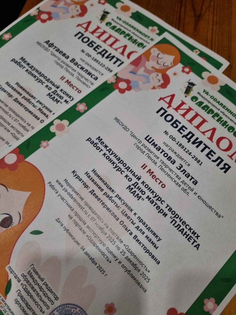 Ученицы детского объединения «Палитра творчества» приняли участие в дистанционном Международном конкурсе творческих работ ко Дню матери «ПЛАНЕТА МАМ».