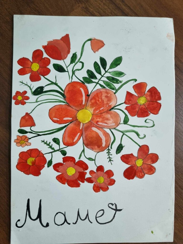 🥈Шматова Злата, с работой «Цветы для мамы».