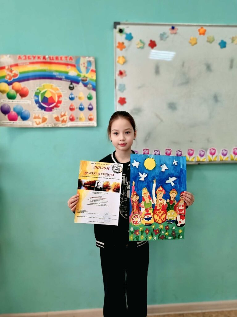Мясникова Ульяна, учащаяся детского объединения «Палитра творчества», стала лауреатом 3 степени в возрастной категории 7–10 лет с рисунком на тему «Единство народов России». Поздравляем Ульяну и руководителя детского объединения «Палитра творчества» Деветерикову Ольгу Викторовну!